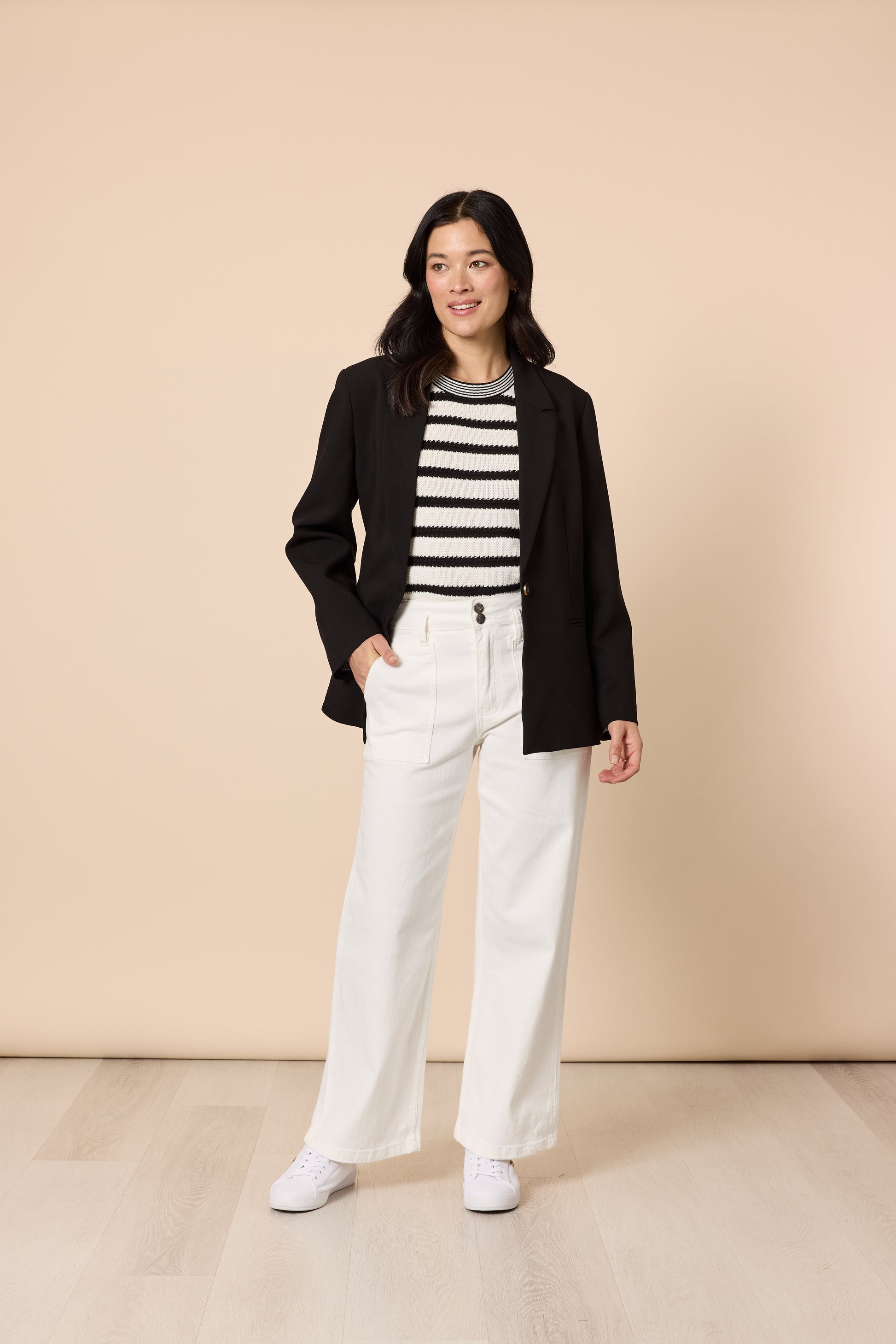 • Whether layered over a striped knit and jeans for casual sophistication or paired with crisp trousers for a more refined finish, the Maddison Blazer instantly pulls any outfit together.