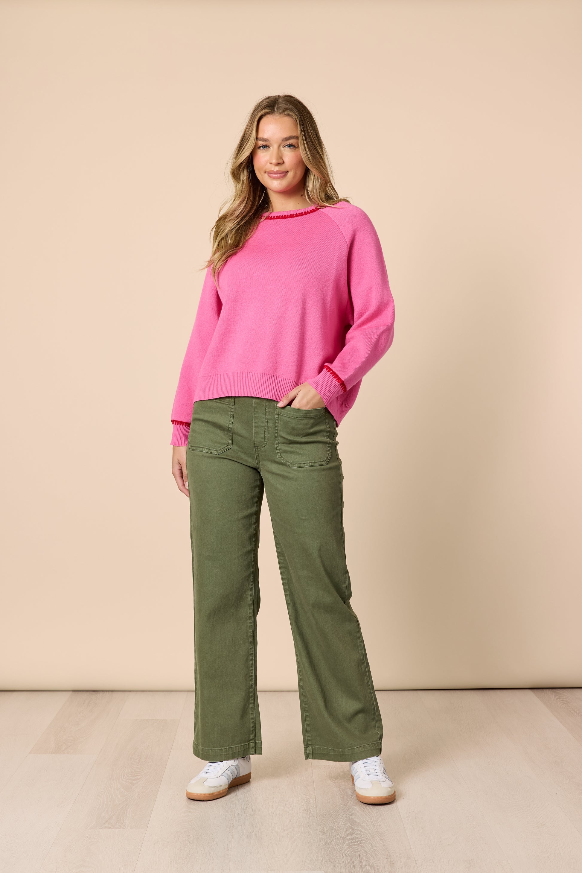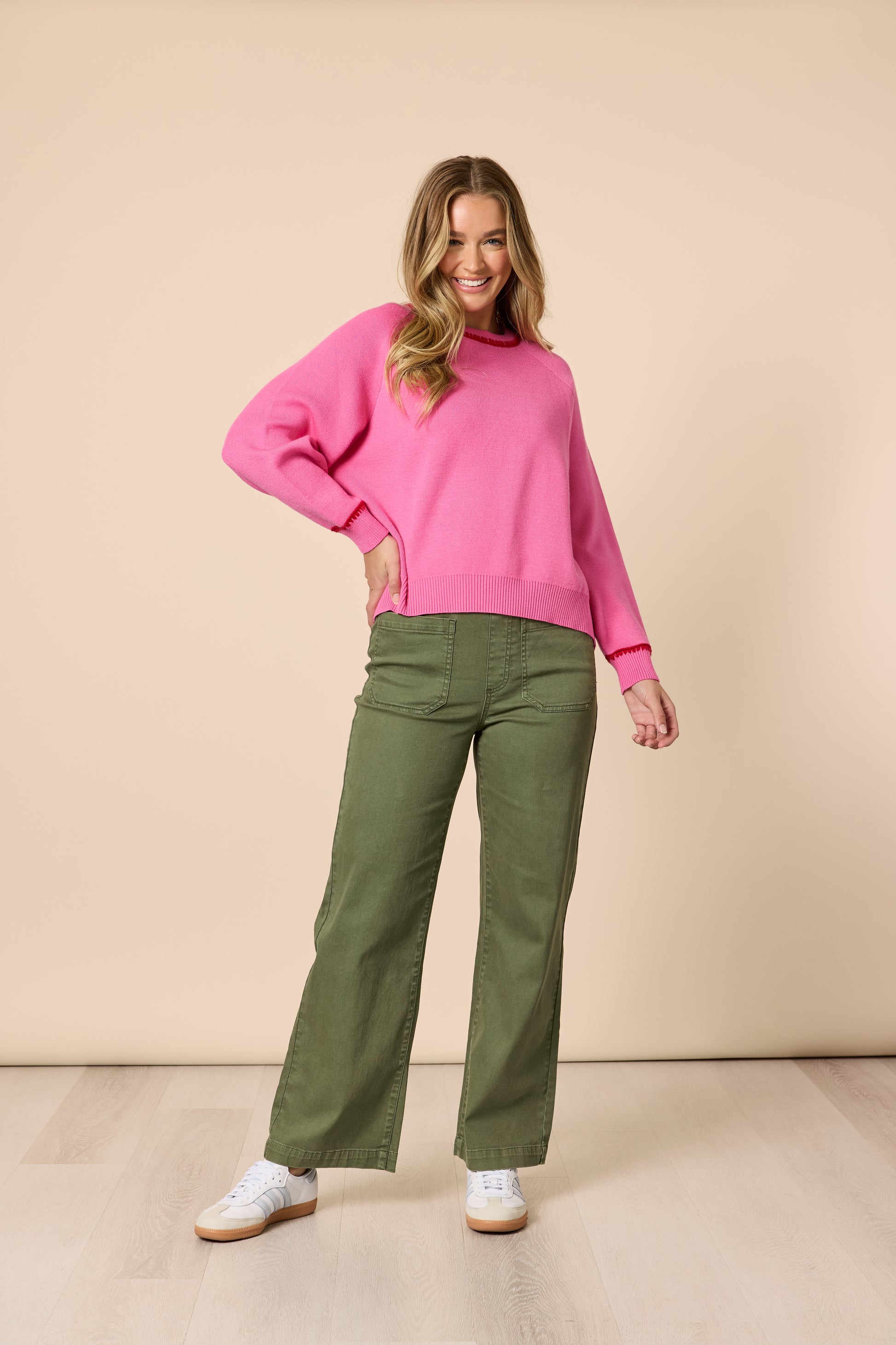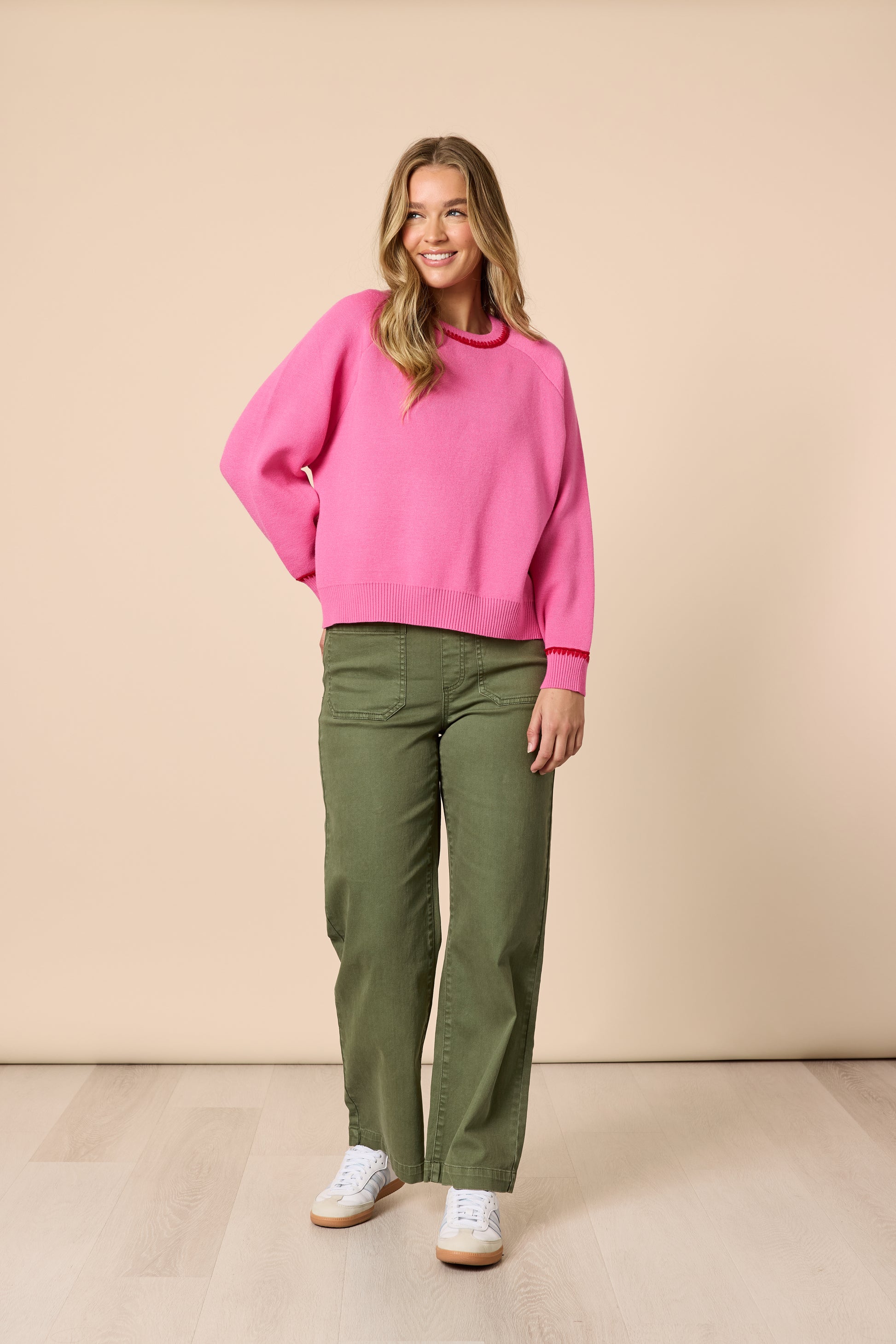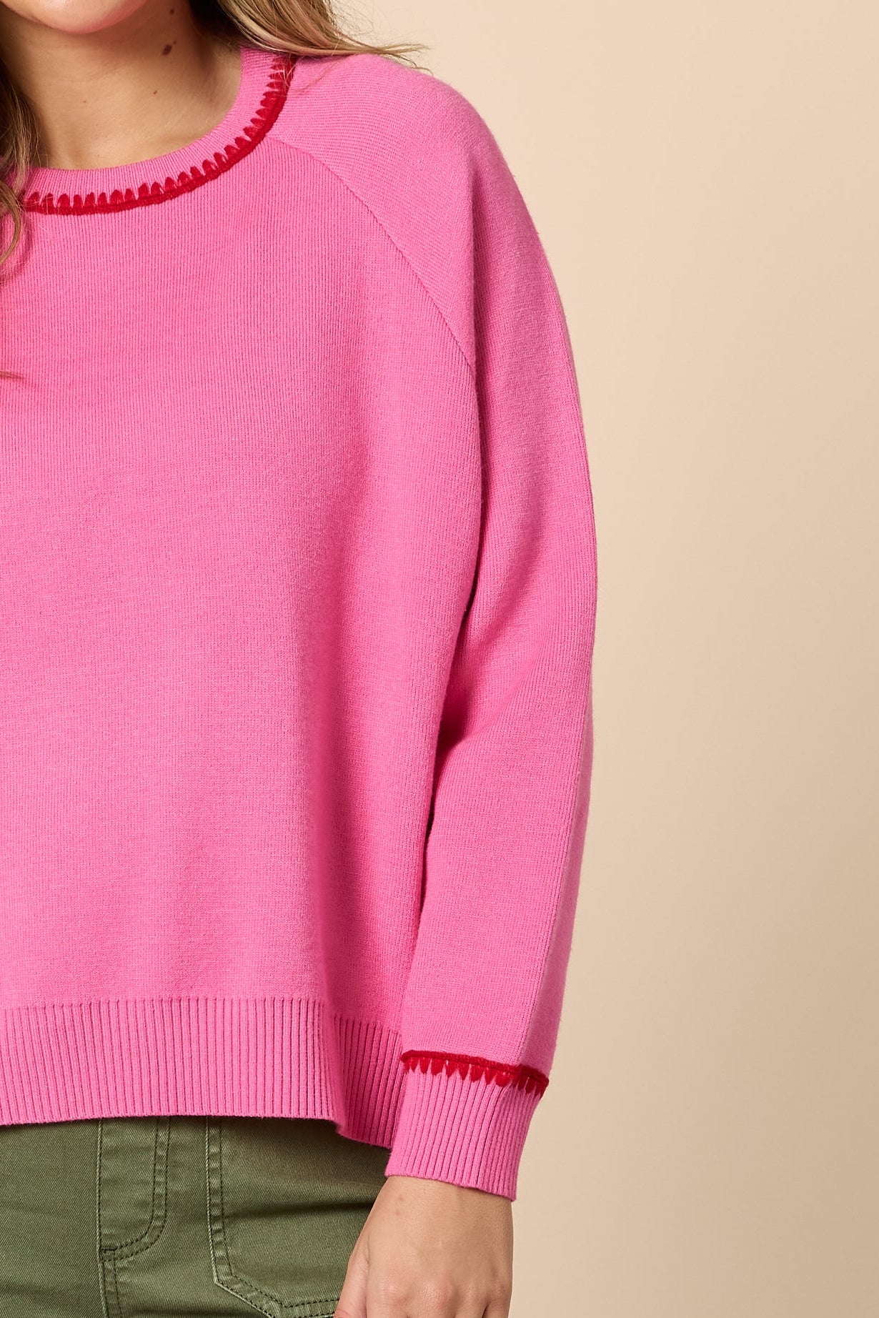 • Crafted from a soft, mid-weight knit, this jumper features delicate contrast stitching around the neckline and cuffs, adding a handcrafted feel and a subtle pop of personality.