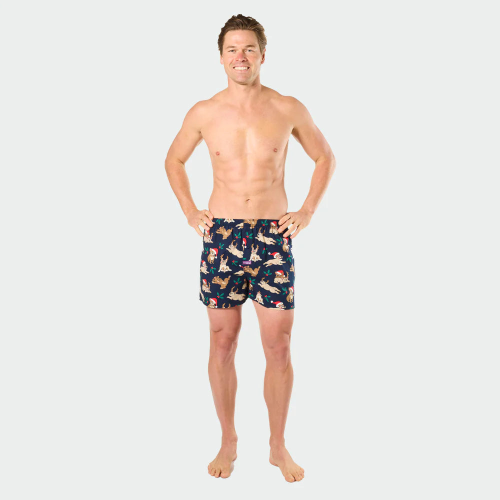 Add a touch of festive fun to your wardrobe with Mitchdowd’s Christmas Dogs Boxer Shorts. Crafted from 100% soft cotton, these boxers feature a cheeky all-over print of playful pups donning Santa hats and reindeer antlers — perfect for spreading Christmas cheer in comfort and style.
